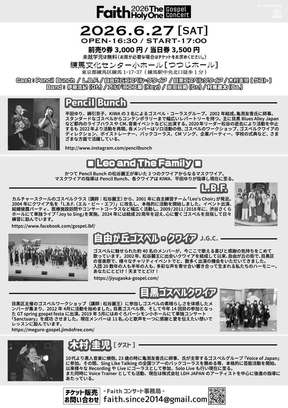 【出演】PencilBunch、L.B.F.、自由が丘ゴスペル・クワイア、目黒ゴスペルクワイア、